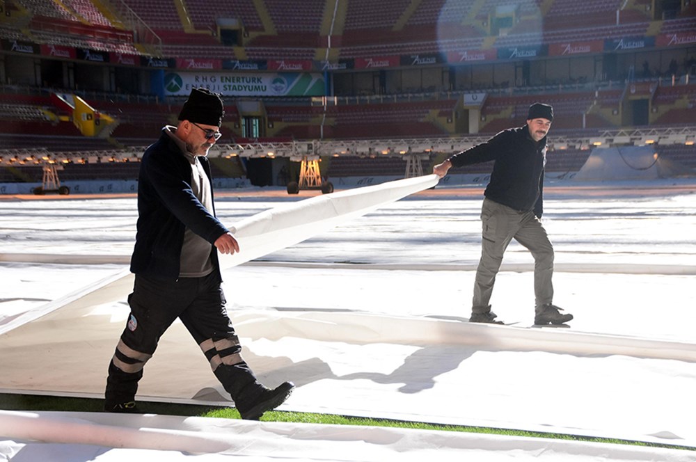 “Sahamızı da soğuk havadan korumak için özel örtü ile çimlerin üzerini örttük. Maç günü son hazırlıklarımızı tamamlayacağız.”