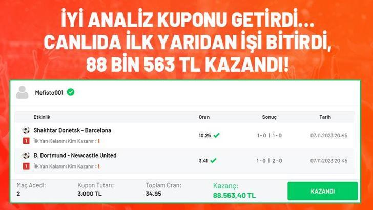 İyi analiz kuponu getirdi… Canlıda ilk yarıdan işi bitirdi, 88 bin 563 TL kazandı!