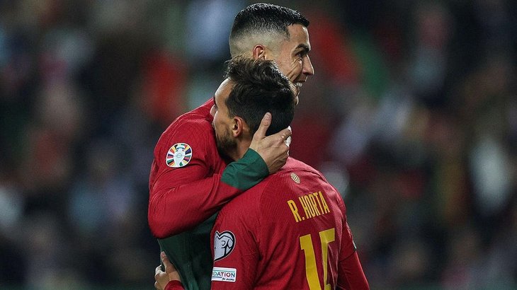 2024 Avrupa Futbol Şampiyonası Elemeleri’nde heyecan devam ediyor. J grubundaPortekizileİzlanda’nın karşı karşıya geldiği maçı ev sahibi takım 2-0 kazandı.Portekiz’e galibiyeti getiren golleri 37. dakikadaBruno Fernandesve 66. dakikadaRicardo Hortakaydetti.Bu sonuçla Portekiz 10’da 10 yaparak grubu 30 puanla lider tamamladı. İzlanda ise 10 puanda kalarak grubu 5. bitirdi.DİĞERSıfır makyaj Azra Akın! Kainat Güzeli Azra Akın’ın makyajsız hali şoke etti!Ekrem’in tavşanı Özgür Özel Türkiye’yi işgalle suçlayan Pervin Chakar’ın elini öpüp konserini dinlediGünün Spor ManşetleriTüm Manşetler