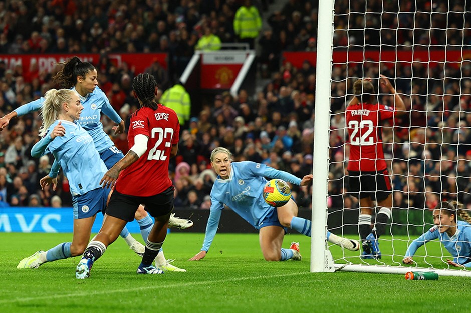 İngiltere Kadınlar Süper Ligi’nde Manchester United ve Manchester City, Old Trafford’da karşılaştı.Ev sahibi takım Katie Zelem’in penaltı golüyle 1-0 öne geçti. Konuk takım 34’te Jill Rood ve 35’te Lauren Hemp’in golleriyle 2-1 öne geçti. İkinci yarıda Khadija Shaw 55. dakikada attığı golle farkı 2’ye çıkardı: 1-3. Konuk takımda Laia Aleixandri Lopez 71. dakikada takımını 10 kişi bıraktı.Manchester City derbiyi 3-1 kazanarak puanını 13 yaptı ve 3. sıraya yükseldi. Bu sezon evinde ilk kez yenilen Manchester United ise 12 puanda kaldı ve 4. sıraya geriledi.Stadyumda 43 bin 615 biletli seyirci karşılaşmayı izledi. Bu sayı Manchester United için rekor oldu. Kırmızı Şeytanlar, iç sahada seyirci rekoru kırdı.
